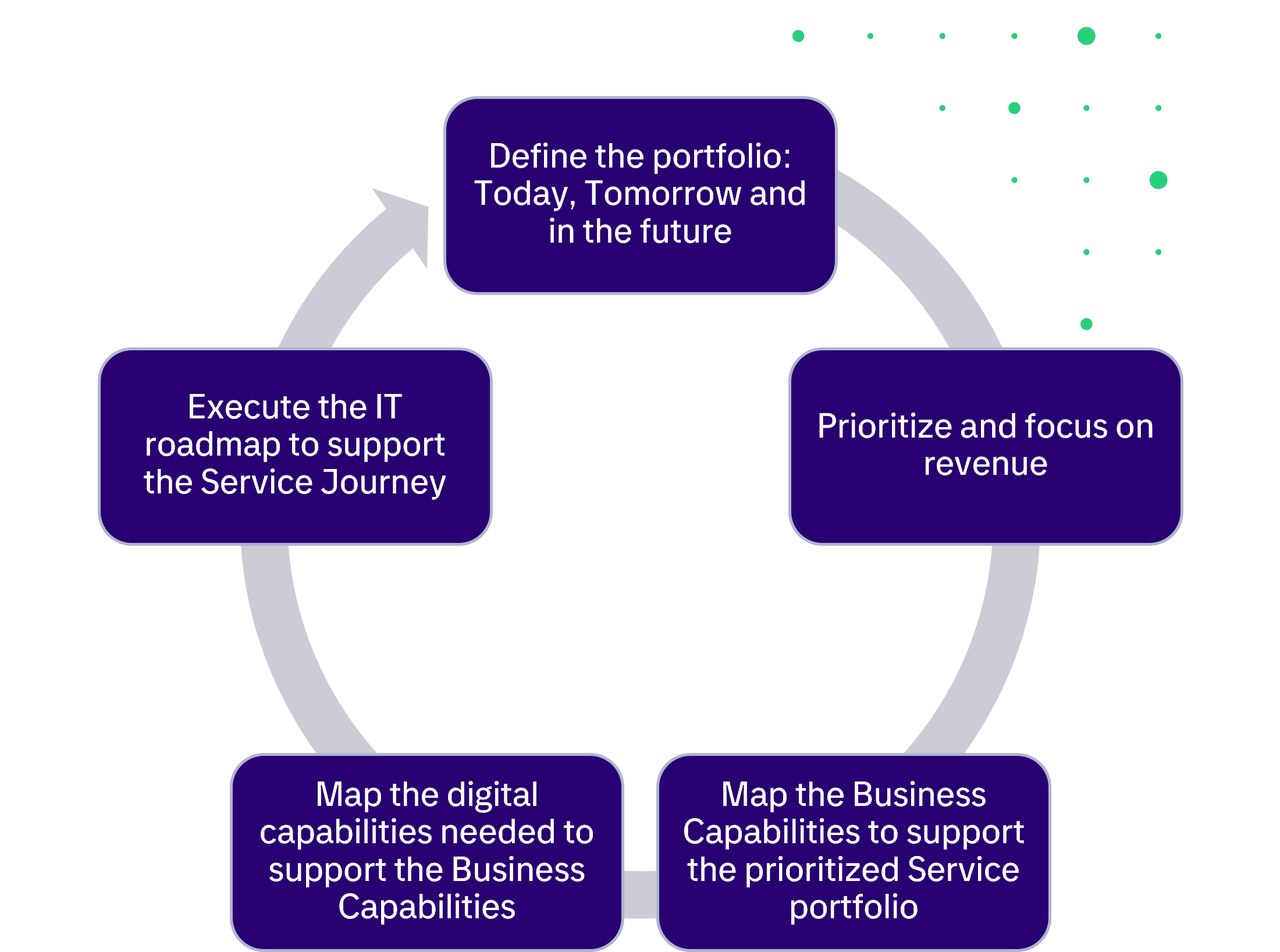By planning for service transformation in all five areas, we provide end-to-end support that puts you in the driver’s seat – ensuring that your roadmap contains realistic milestones and growth results.